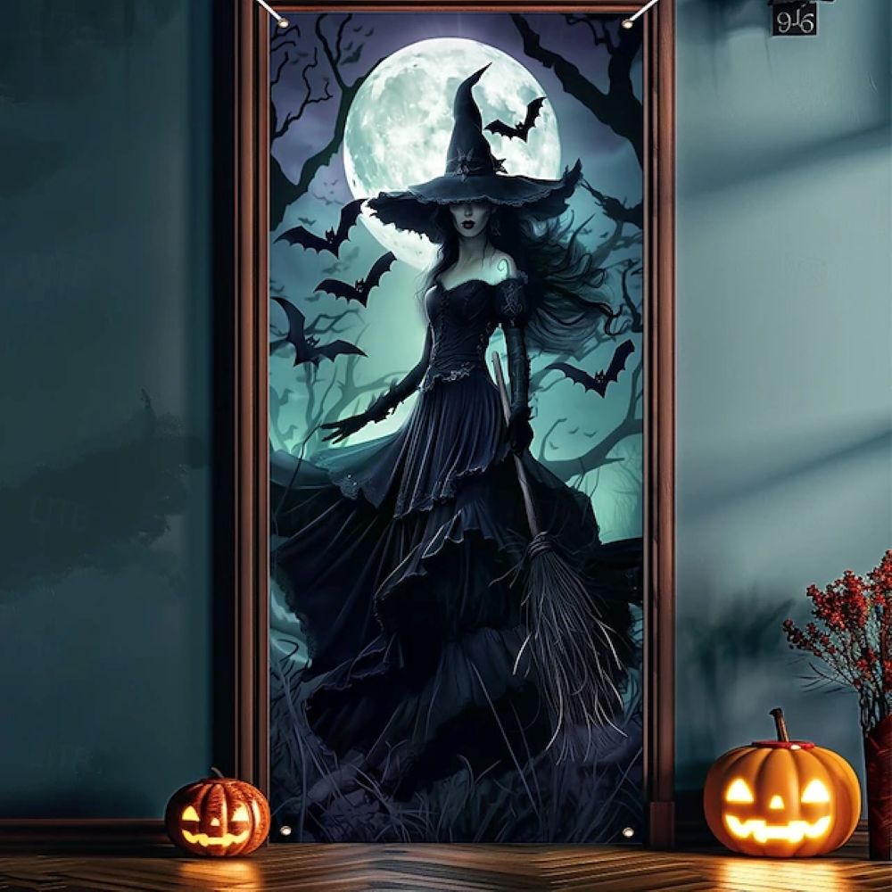 Halloween Spooky Door Covers Enchanting Witch SC006