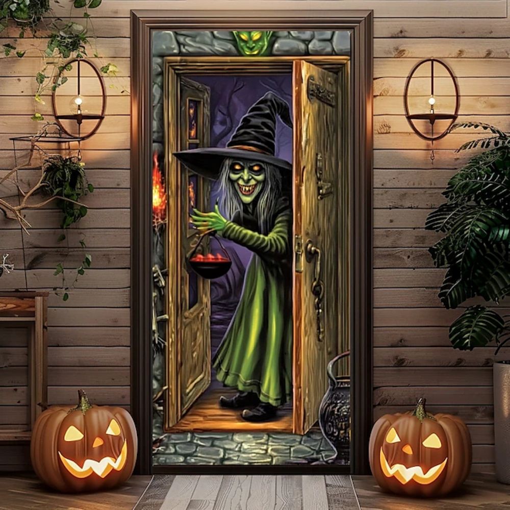 Halloween Spooky Door Covers Enchanting Witch SC003