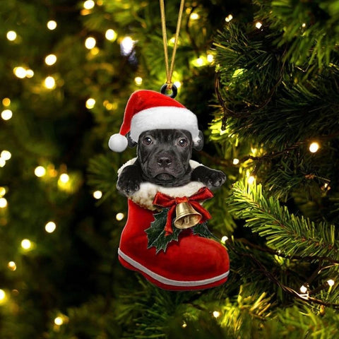 American Staffordshire Terrier In Santa Boot Christmas Hanging Ornament SB067