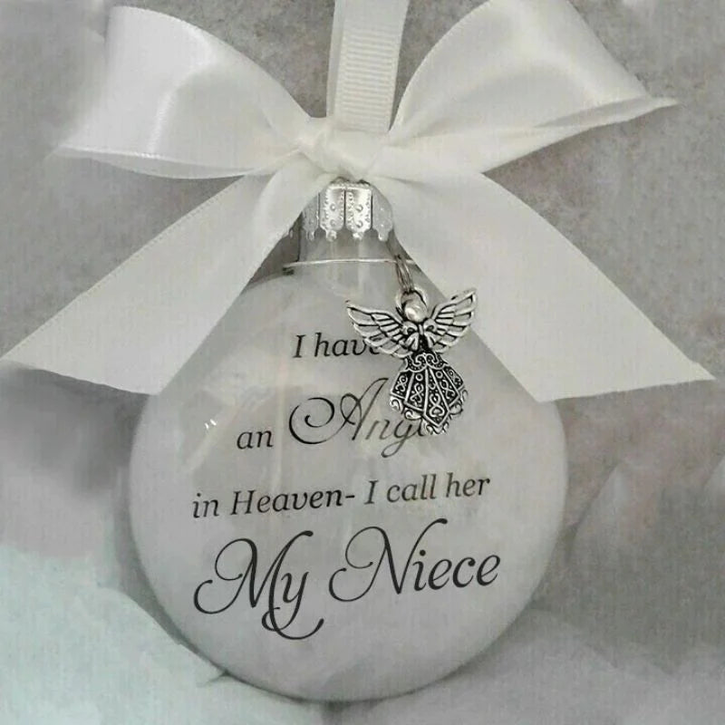 We made an original, classic spherical transparent decoration with the engraved "I Have an angel in Heaven" on it to strongly remind this person of the impact on our lives.