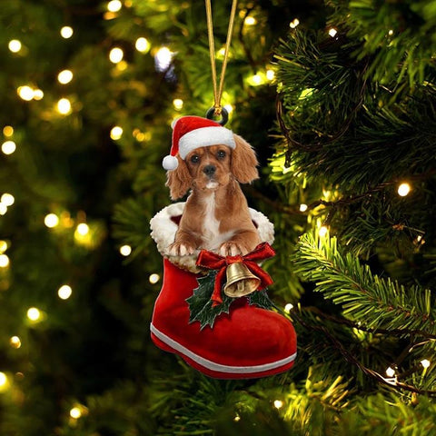 Cavalier King Charles Spaniel In Santa Boot Christmas Hanging Ornament SB030