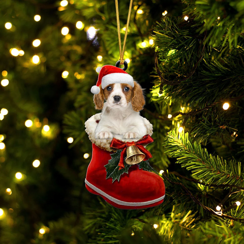 Cavalier King Charles Spaniel In Santa Boot Christmas Hanging Ornament SB035