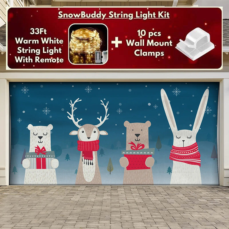 You now have the option to add the string light kit to your order at 50% Off and turn your garage into a true winter wonderland. The kit includes 1x 33ft warm white string light, a remote control, and 10x sticky wall mount clamps.