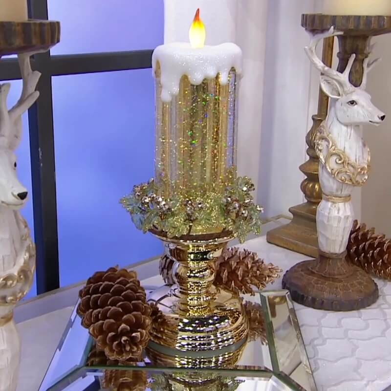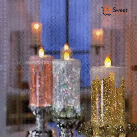 Introducing the Colour Changing LED Water Candle with Glitter. Unlike Christmas lights, these are more engaging and colorful. The glitters beautifully change colors as they swirl around within the transparent cylinder. The glitter's aesthetic is magnified thanks to the LED lights. It also mimics the warm and cozy ambient provided by a Christmas candle!
