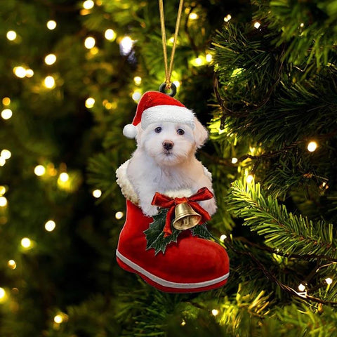 Coton De Tulear In Santa Boot Christmas Hanging Ornament SB026
