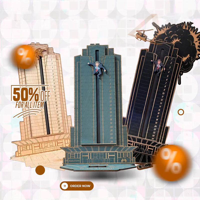 Make it feel like Christmas is getting near by watching Hans Gruber fall off of Nakatomi Plaza for 25 straight days! Character can be rotated.