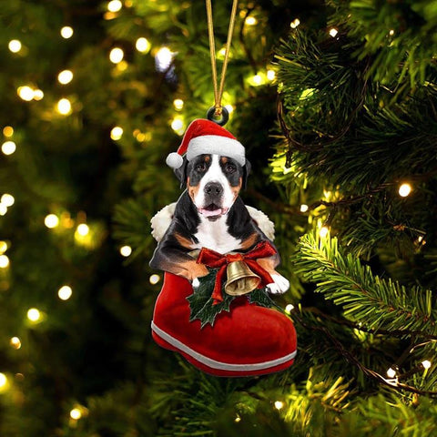 Greater Swiss Mountain Dog In Santa Boot Christmas Hanging Ornament SB219