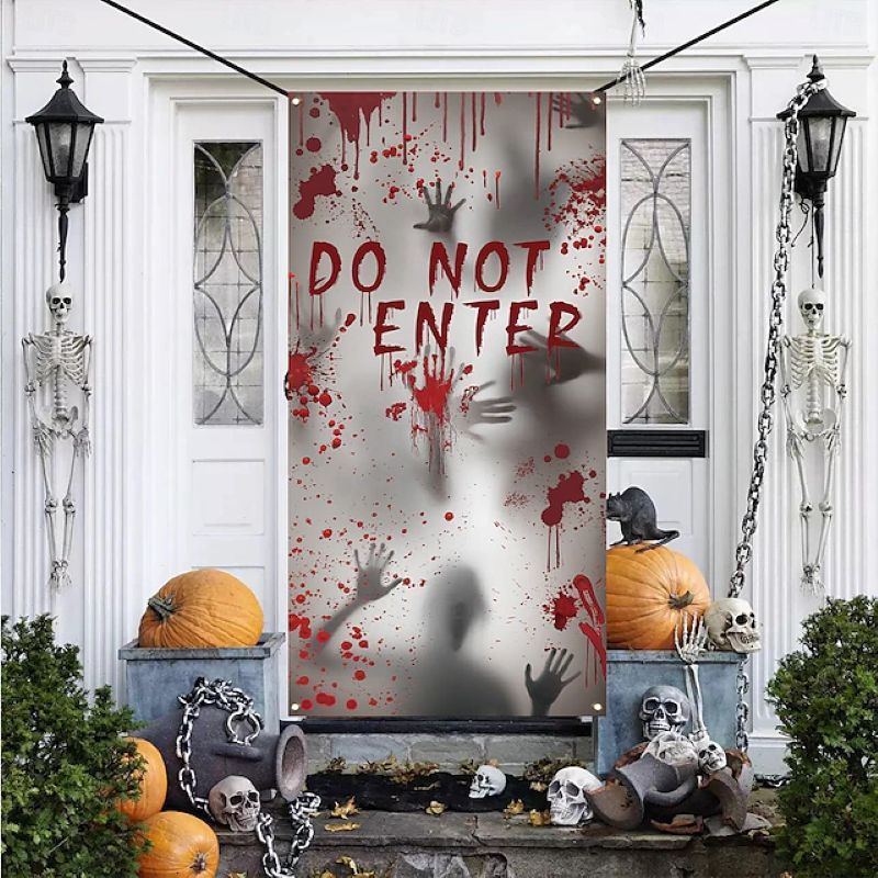 Do Not Enter Halloween Door Cover - Perfect for Front Door Decoration