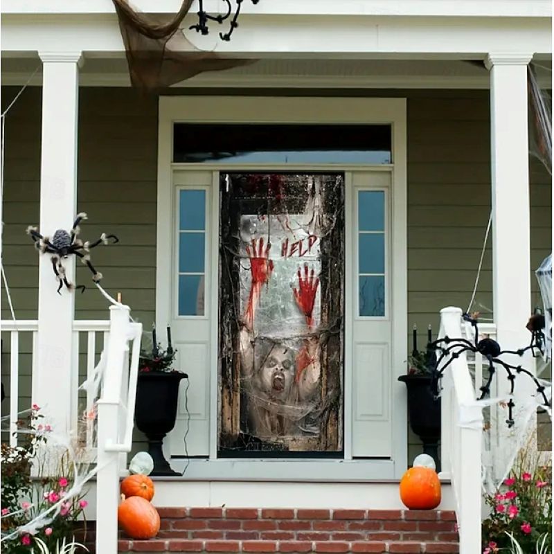 Keywords: Halloween door cover, witch door decoration, front door Halloween banner, outdoor Halloween decor, farmhouse Halloween door curtain, durable Halloween tapestry.