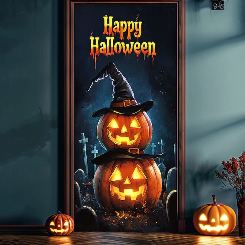 Pumpkin Halloween Door Cover - Perfect for Front Door Decoration