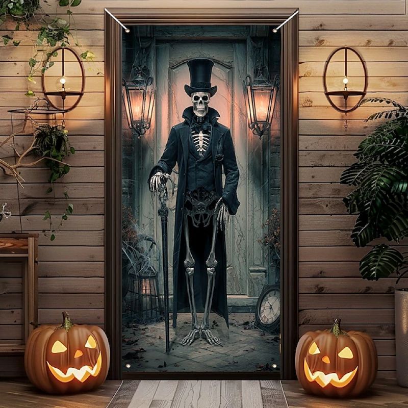 Skeleton Halloween Door Cover - Perfect for Front Door Decoration