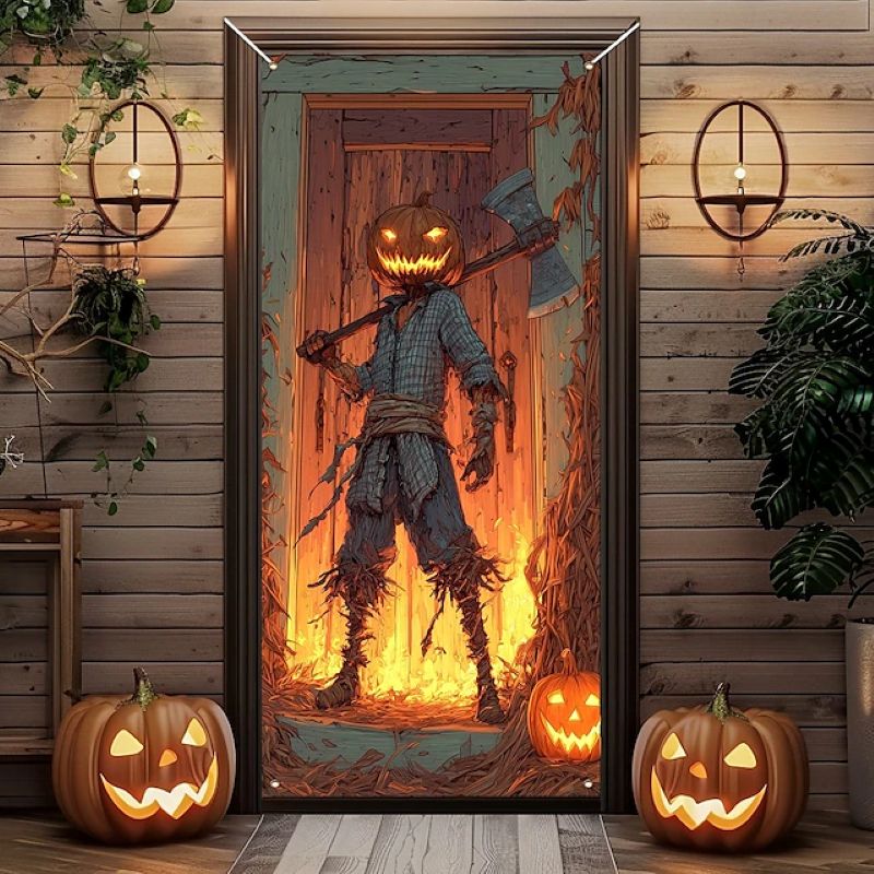 Keywords: Halloween door cover, witch door decoration, front door Halloween banner, outdoor Halloween decor, farmhouse Halloween door curtain, durable Halloween tapestry.
