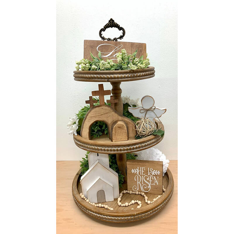 Happy Easter! He is Risen! Decorate and celebrate the resurrection of Christ with this beautiful tiered tray decor.