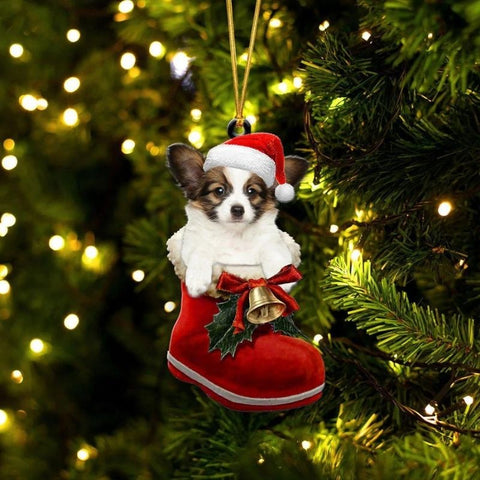 Papillon Dog In Santa Boot Christmas Hanging Ornament SB112