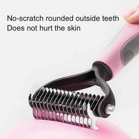 Pet Grooming Tool - 2 Sided Undercoat Rake for Cats Dogs brush - Safe Dematting Comb for Easy Mats Tangles Removing