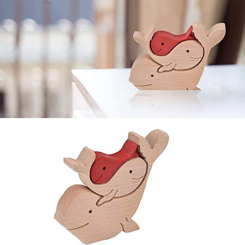 Red Whale Family Handmade Wooden 3D Puzzle