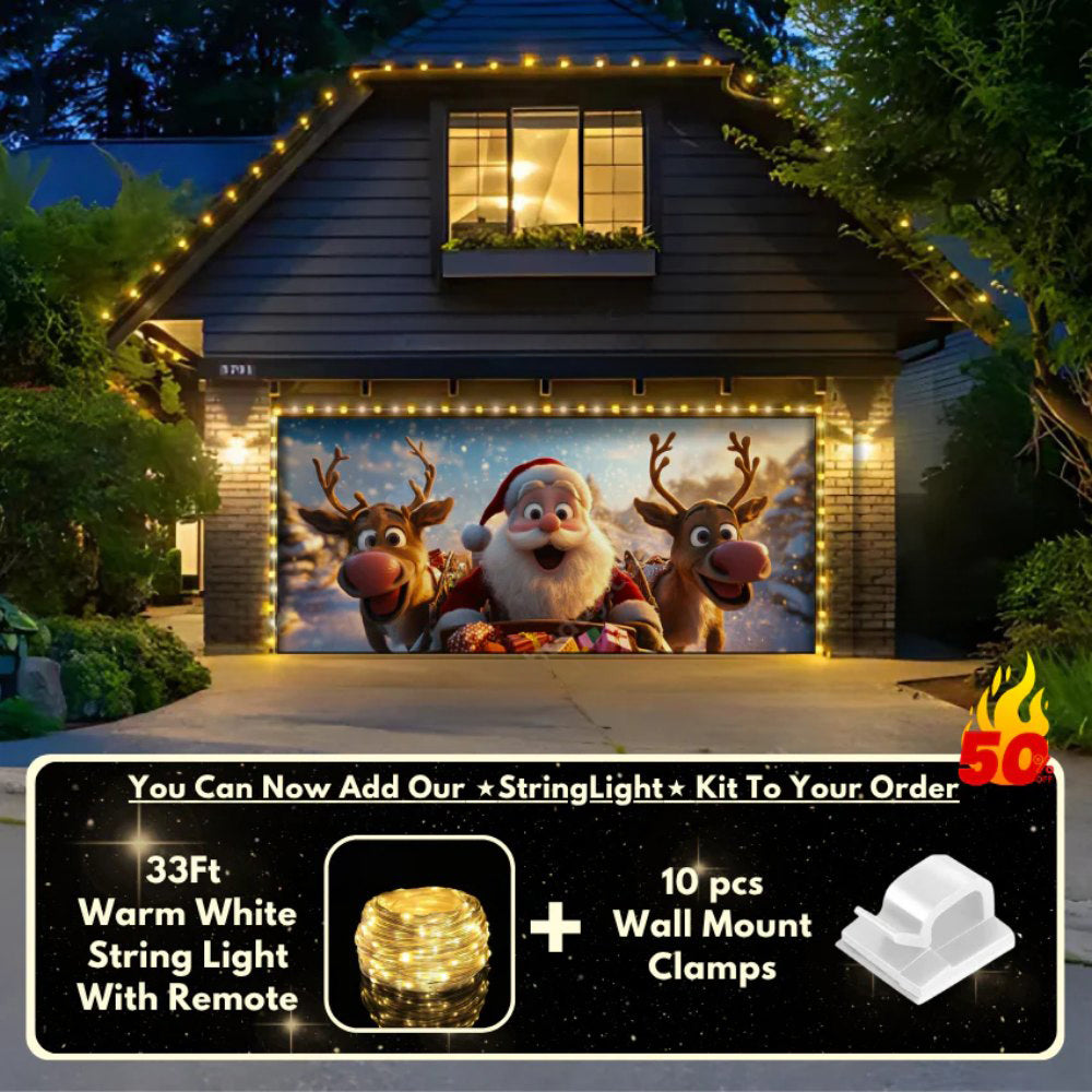 Introducing the coolest thing since reindeer on roofs: "Santa & Reindeers Garage Door Christmas Covers!"🎄🚪