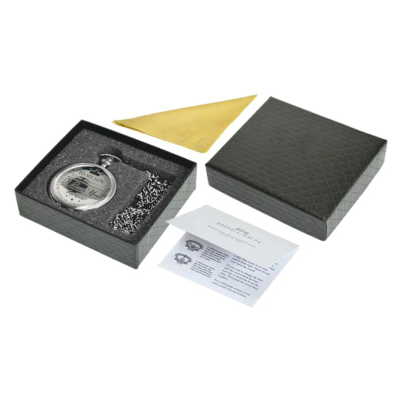 We understand that the presentation of the gift is just as important as the watch itself, which is why all our pocket watches come in a free square gift box, and safely placed within a shaped foam to protect the time piece further during transit.