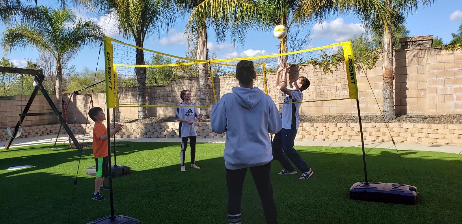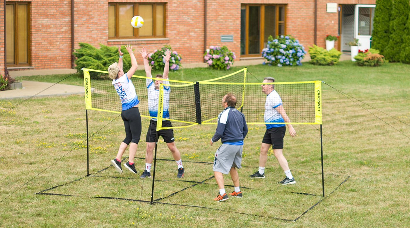- ADJUSTABLE NET - Choose men's or women's regulation height to make the game as challenging as you want. No matter what your age or skill set, the Four-Square Volleyball Game is fun for the entire family.